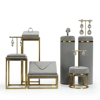 Bej mikrofiber mücevher mağaza sayaç ekran sahne kolye yüzük bileklik takı ekran standı takı ekran setleri